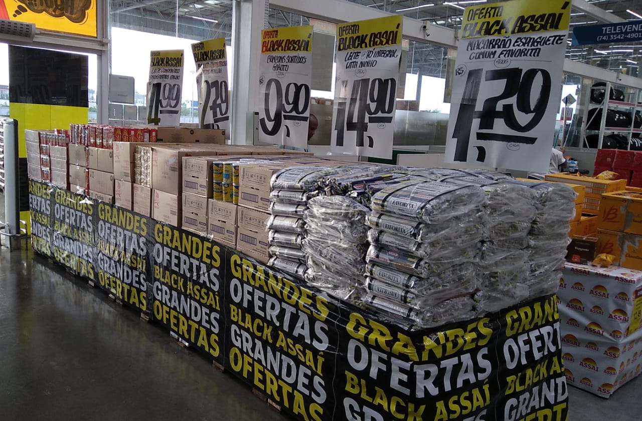 No dia da Black Friday, as lojas da rede abrem às 6h da manhã para que os(as) clientes(as) aproveitem as ofertas por mais tempo; promoções incluem categorias como alimentos, bebidas, eletroportáteis, pneus e mais, reforçando o compromisso do Assaí com preço baixo