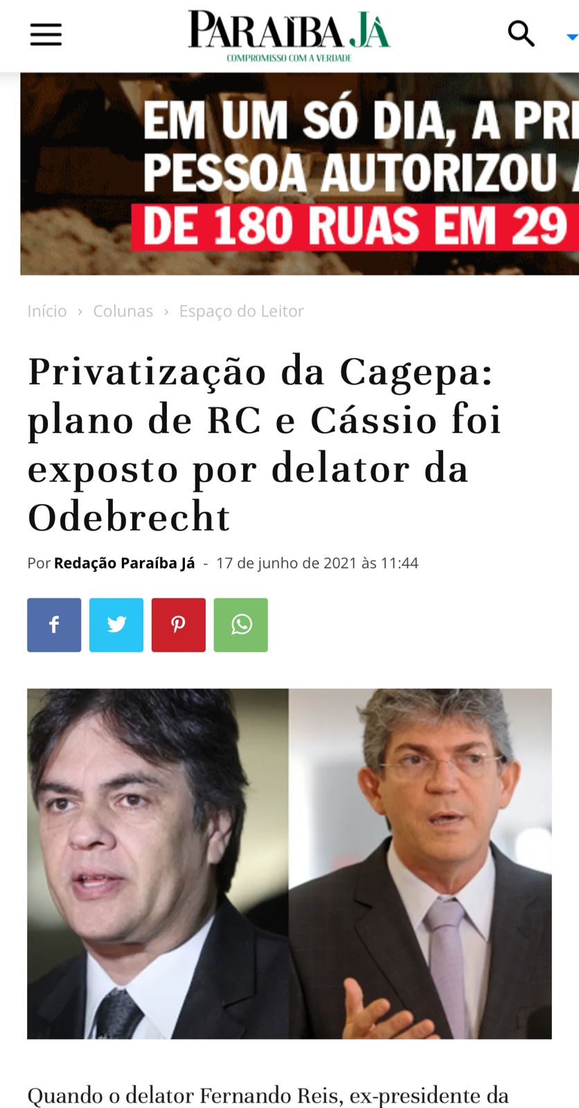 Mas, o que muitas pessoas não sabem é que o debate sobre o tema está longe de ser novidade na Paraíba. Em 2017, em delação premiada no âmbito da Operação Lava Jato, o ex-executivo da Odebrecht, Fernando Reis, afirmou que o ex-senador Cássio Cunha Lima (PSDB), pretendia no período das eleições de 2014, época em que foi candidato ao Governo da Paraíba, privatizar os serviços da Cagepa, através de negociação junto à Odebrecht Ambiental.
