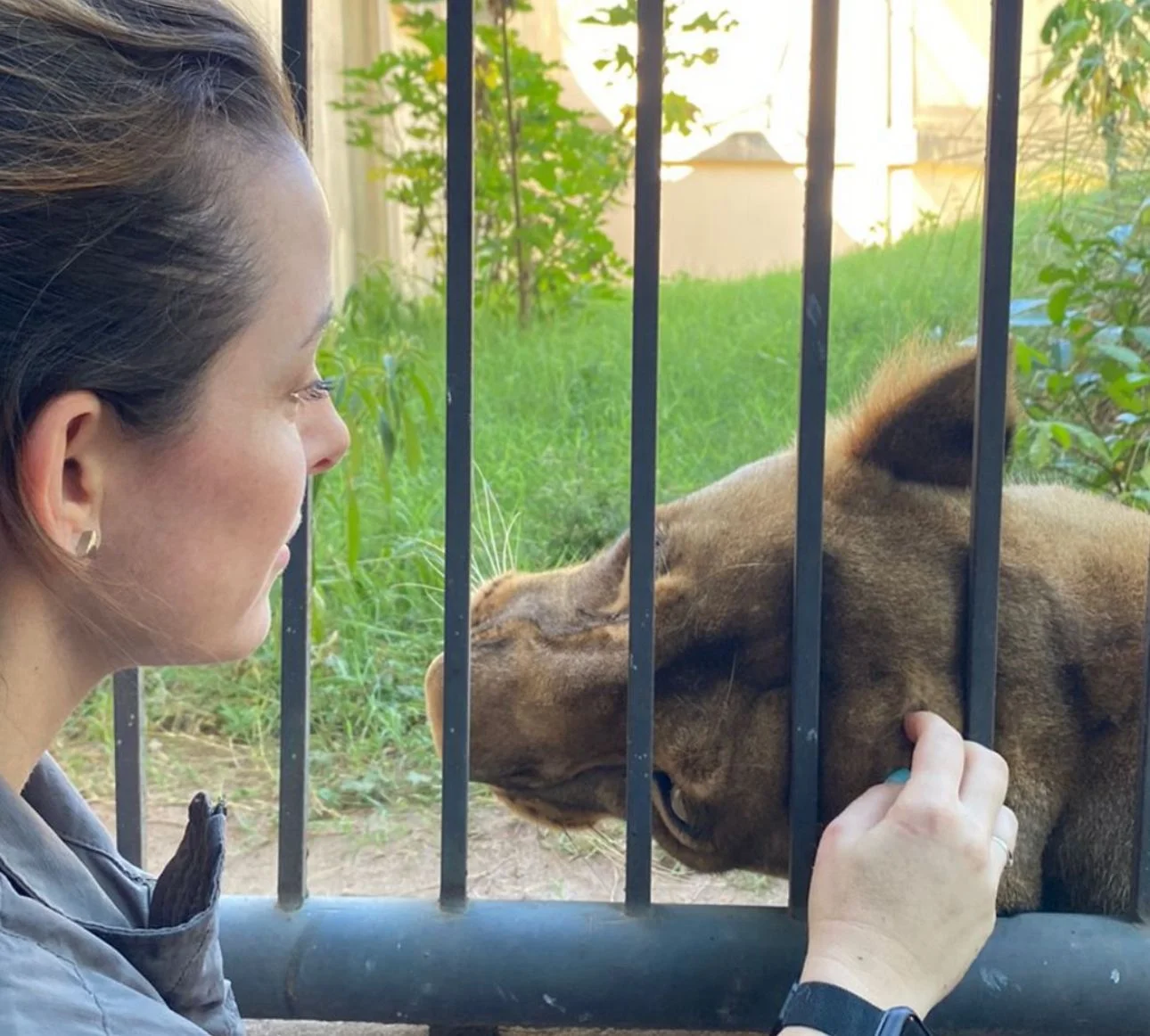 Segundo a veterinária, “Leona, além de super bem cuidada, condicionada e treinada, tem uma proximidade muito grande com todos os veterinários, biólogos e tratadores do zoológico”. No vídeo, o animal se esfrega nas grades enquanto recebe o carinho da profissional, evidenciando o comportamento dócil no ambiente adequado.