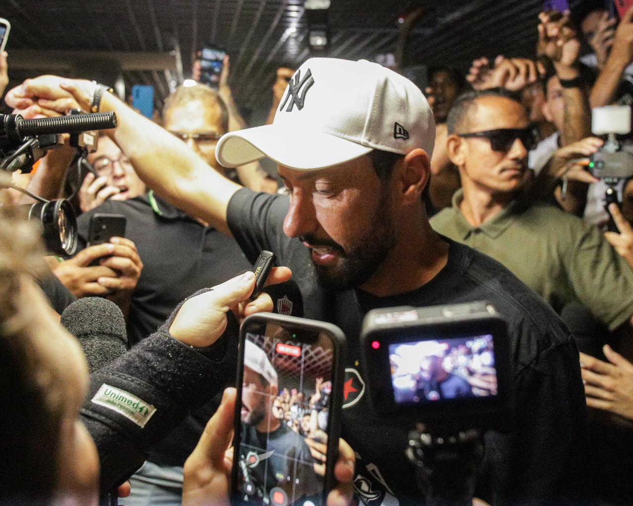 A espera dos torcedores do Botafogo-PB pelo meia Nenê acabou nesta segunda-feira (12). Aos 44 anos, o experiente jogador desembarcou no Aeroporto Internacional Presidente Castro Pinto, em João Pessoa, recebendo calorosa recepção da torcida alvinegra. Desde as 10h, o saguão já estava tomado por bandeiras e camisas listradas, com fãs vindos de toda a Região Metropolitana e do interior do estado para ver de perto o novo camisa 10 do clube.