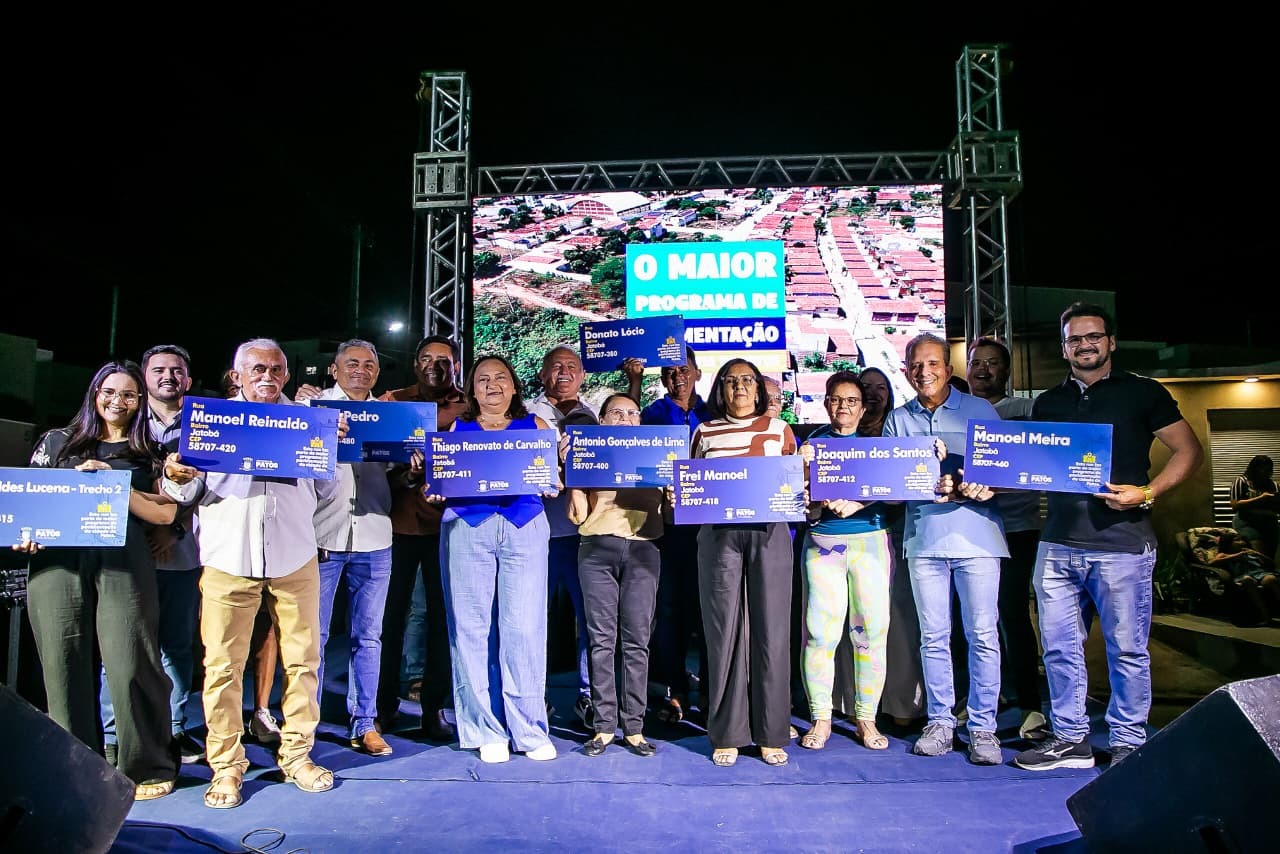 A Prefeitura de Patos realizou, na noite desta quarta-feira (15), a entrega oficial da pavimentação de 10 ruas no bairro Jatobá, marcando mais uma etapa do maior programa de pavimentação da história do município. A cerimônia fez parte da programação comemorativa pelos 122 anos de emancipação política de Patos e contou com a presença do prefeito Nabor Wanderley, do vice-prefeito Jacob Souto, além de secretários, vereadores e moradores da comunidade.